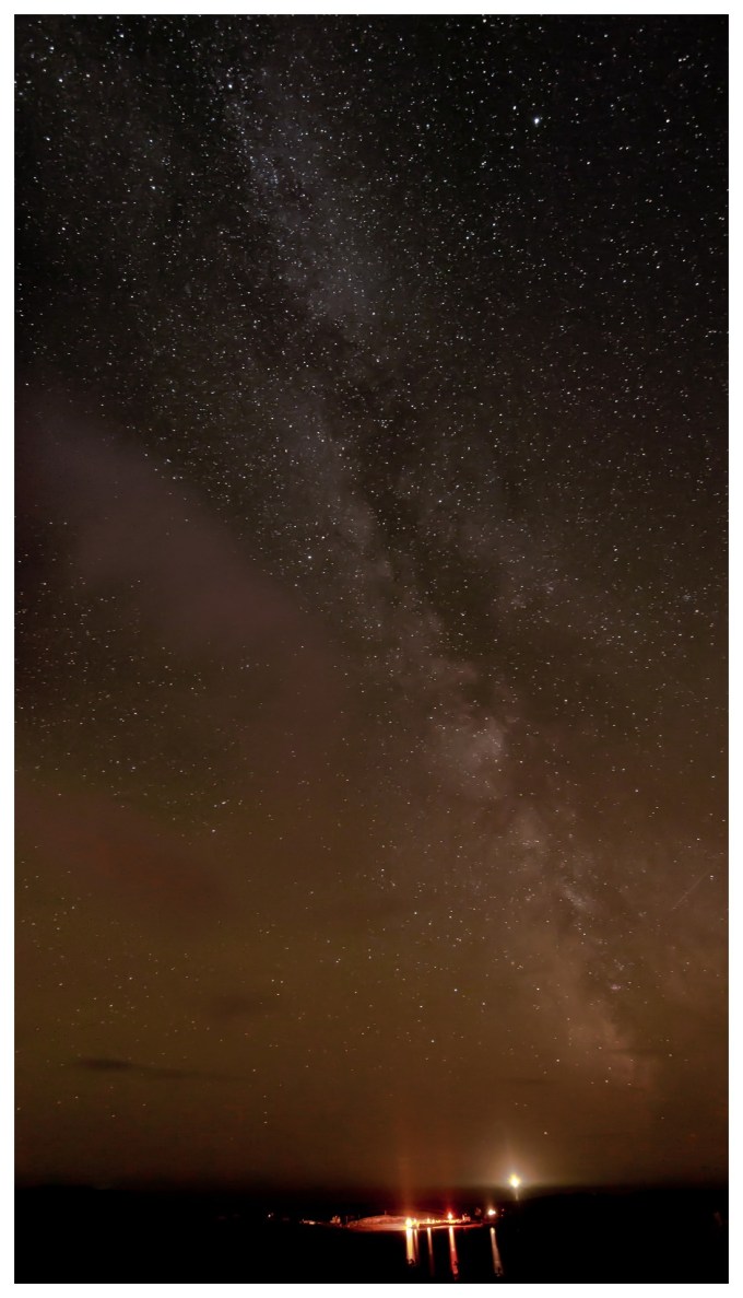 A spectacular view into the galaxies over Roaringwater Bay, West Cork, – with the terrestrial lights of Long Island and the Fastnet Lighthouse….