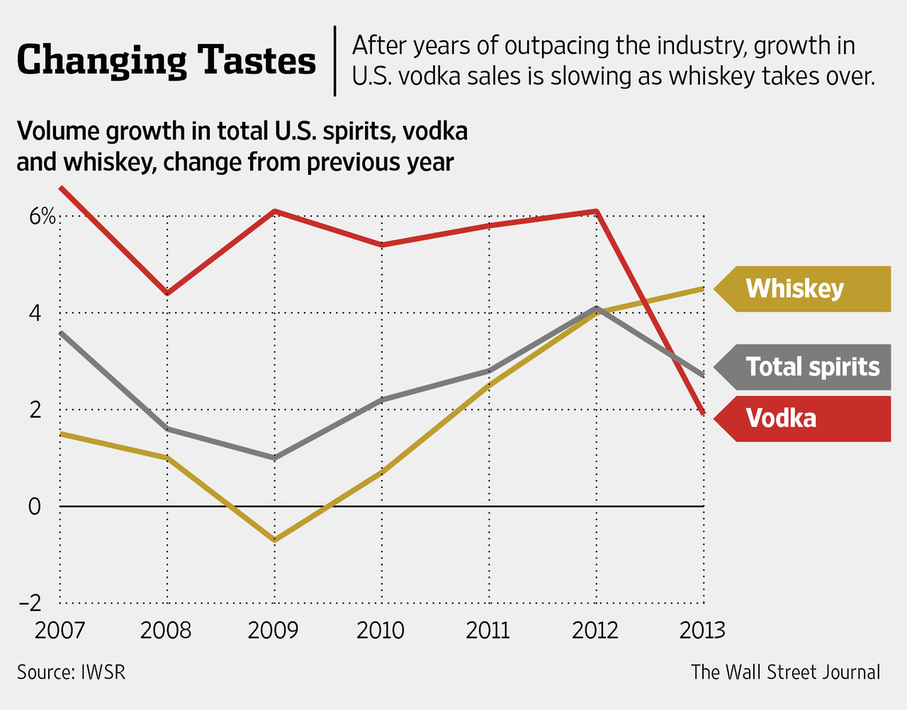 Vodka Sales Fall as Drinkers Raise Glass to Whiskey – WSJ
