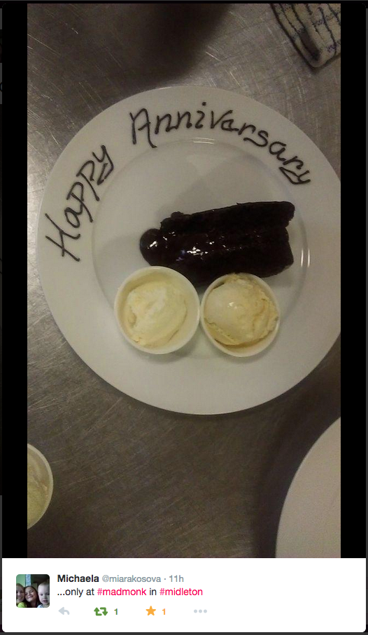 I actually think that’s an e. I worked as a chef for two and a bit years after leaving school and I can confirm that using those little chocolate pen things is hard as fuck. What that chef has done is the equivalent of the Book Of Kells, only an edible version which is therefore vastly superior.