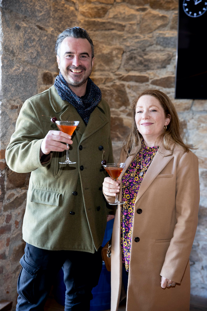 Guests were welcomed with a cocktail called Brigid’s Cloak. Named after the legendary cloak laid down by Brigid as she claimed lands from the King of Leinster, it was based on the classic Manhattan. Reflecting Brigid’s reputation as an Irish woman ahead of her time, it was made using Fercullen Irish Whiskey and Irish ingredients made by female producers, with vermouth from Valentia Island Vermouth and bitters from Beara Bitters.